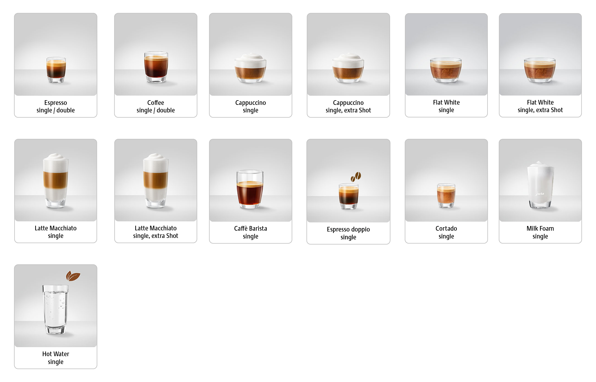 Fifteen different specialties are available at the touch of a button. The VC compact brewing unit ensures that the coffee always flows into the cup under ideal conditions. The Pulse Extraction Process (P.E.P.®) optimizes the aroma of a short espresso. Fine foam technology creates airy, feather-light milk foam for cappuccino or other specialties.